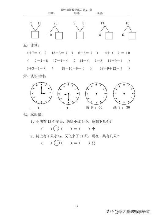 大纲:幼小衔接数学试卷打印