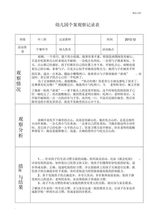 大班幼儿日常行为观察记录